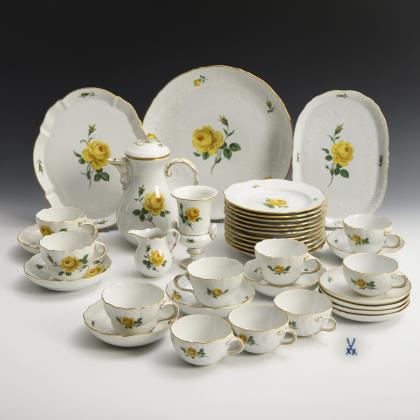 37 Teile eine Kaffee- und Teeservice "Gelbe Rose". Meissen.