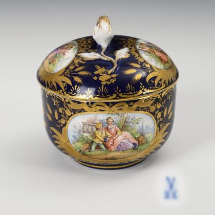 Dose mit Kobaltfond und Watteau-Malerei. Meissen.