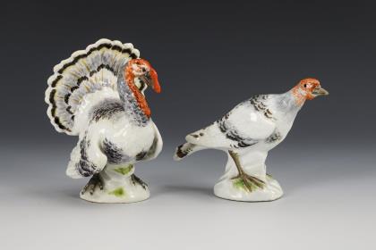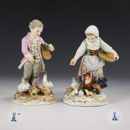 Gänsefütternder Knabe und hühnerfütterndes Mädchen. Meissen.