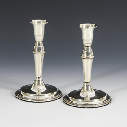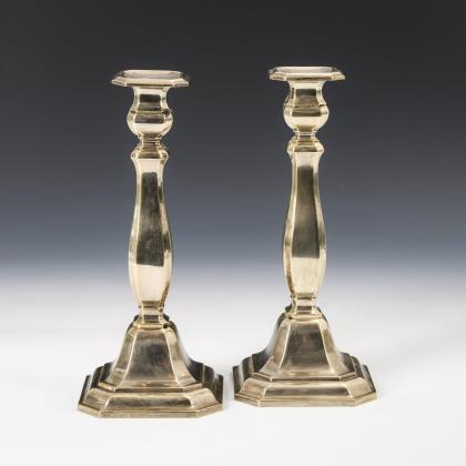 1-flammige Kerzenleuchter mit Balusterschaft und beschwertem, achteckigem Fuß. Silbergewicht je ca. 241 g