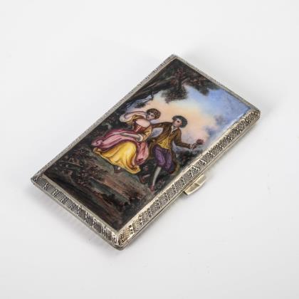 Zigarettenetui mit erotischer Emailmalerei.
