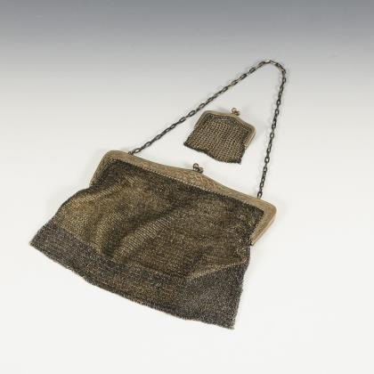 Silbernes Kettentäschchen und passendes Portemonnaie.