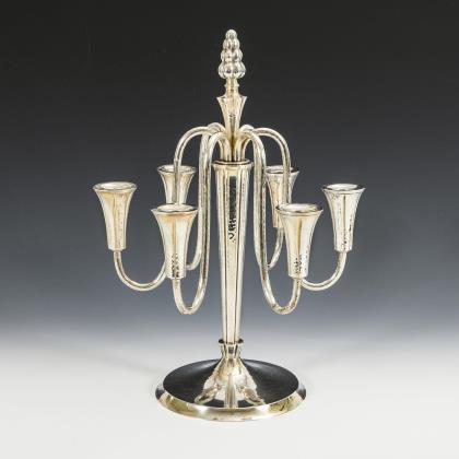5-flammiger Art-déco-Silberleuchter.
