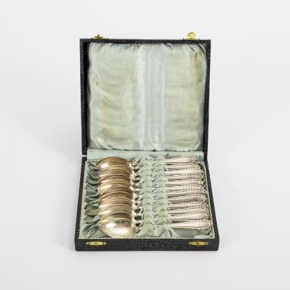 12 Jugendstil-Mokkalöffel in Originaletui.