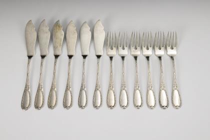 Fischbesteck für 6 Personen. Bruckmann & Söhne, Heilbronn.