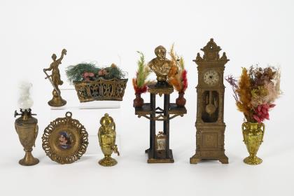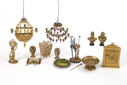 Konvolut Goldblech- und Zinn-Zubehör für die Puppenstube.