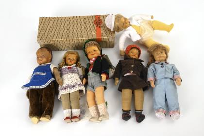 6 Stoffpuppen. 5x Hildegard Krahmer.