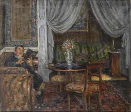 DIEZ, Hugo (1863 Roßfeld - 1943 Metzingen): Interieur mit Leser.