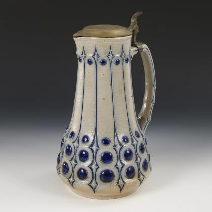 Seltene Jugendstil-Kanne nach einem Entwurf von Wilhelm Ratelbeck. Dr. Fritz Hammerschmidt, Grenzhausen.