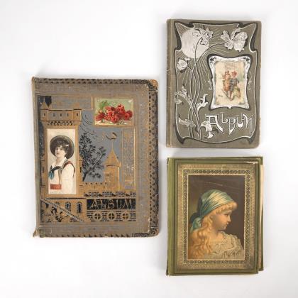 3 Jugendstil-Alben mit Oblaten.