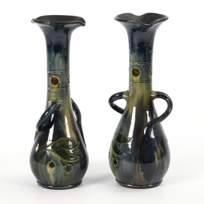 Jugendstil-Vasenpaar mit Kirschmotiv.