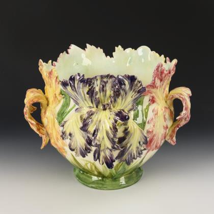 Jugendstil-Cachepot mit Tulpenmalerei. Franz Anton Mehlem, Bonn.