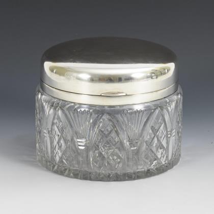 Große Kristallglasdose mit Silberdeckel. Hermann Behrnd, Dresden.