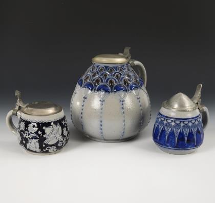 Jugendstil-Kanne und 2 Bierseidel. Höhr-Grenzhausen.