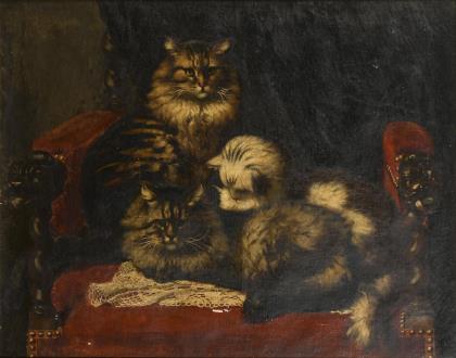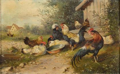 Barocker Maler: Landschaft mit Hahn und Katze.