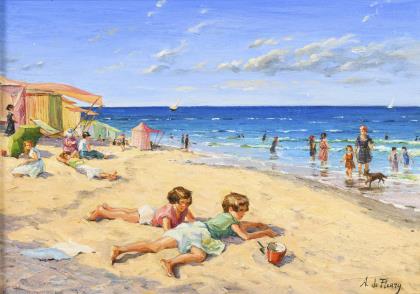 DE FLEURY, A.. Strandszene mit Kindern.