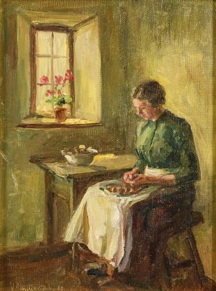 MARKEWITSCH, Viktor (1881 Zgierz/Polen - 1932 Frankfurt/Main). Frau beim Obst schneiden.