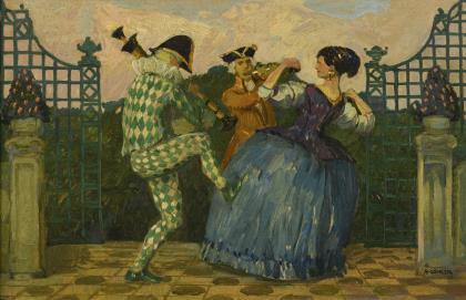 GÖHLER, Hermann (1874 Neustadt/Haardt - 1959 Karlsruhe). Komödianten vorm Schlosspark.