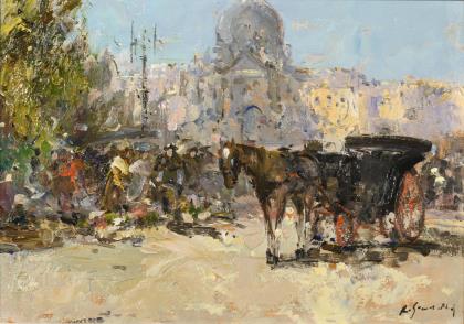 GRAVINA, Maria Rita. Pferdekutsche am Blumenmarkt.