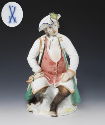 Art déco-Figur: Sitzender Jäger. Meissen.
