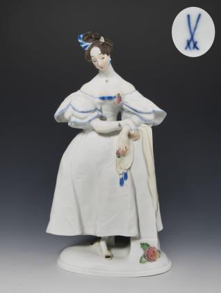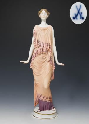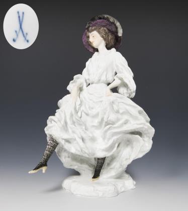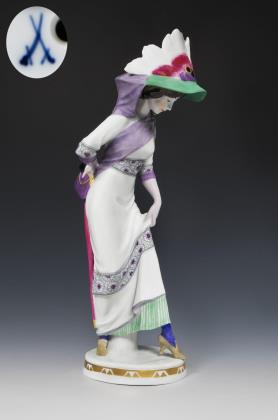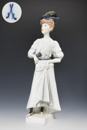 Seltene große Jugendstil-Figur: Pariserin. Meissen.