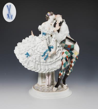 Tänzer aus dem "Russischen Ballett": Harlekin und Columbine. Meissen.