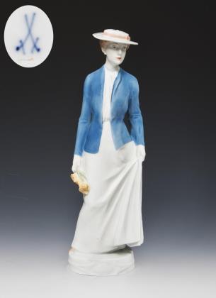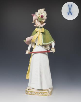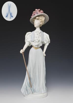 Jugendstil-Figur: Pariserin mit Gehstock. Meissen.