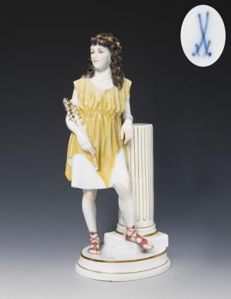 Jugendstil-Figur: Mädchen mit Blütenbogen. Meissen.