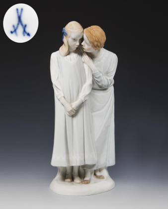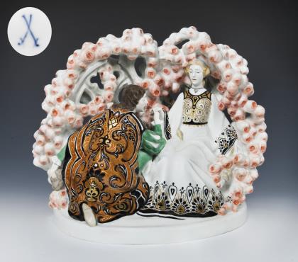 Seltene große Jugendstil-Figurengruppe: Dornröschen. Meissen.