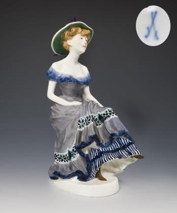 Jugendstil-Figur: Pariserin mit Hut und Fächer. Meissen | Update.