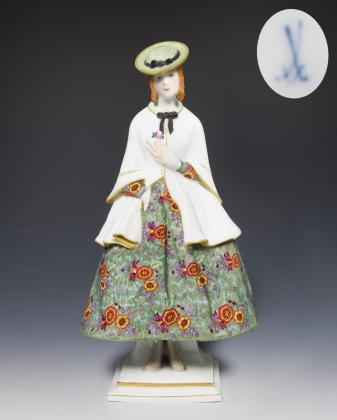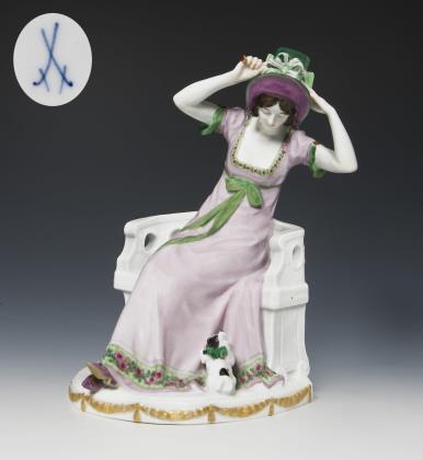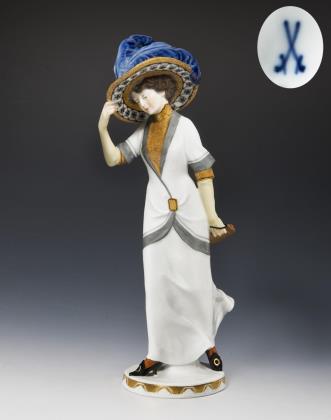 Jugendstil-Figur: Pariserin mit Hut. Meissen.