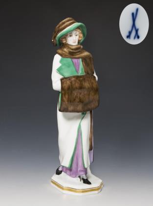 Jugendstil-Figur: Dame mit Muff. Meissen.