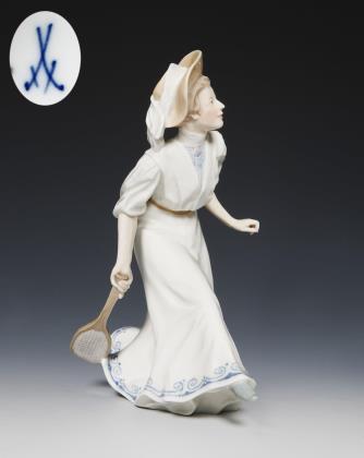 Jugendstil-Figur: Tennisspielerin. Meissen.