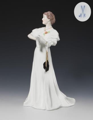 Jugendstil-Figur: Balldame, einen Handschuh zuknöpfend. Meissen.