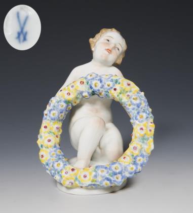Seltene Figur: Kind mit Blumenkranz. Meissen.