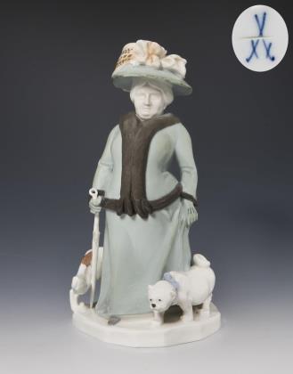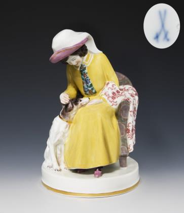 Jugendstil-Figurengruppe: Dame mit Hund. Meissen.