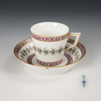 Empire-Vitrinentasse mit Rosenbordüre. KPM Berlin.