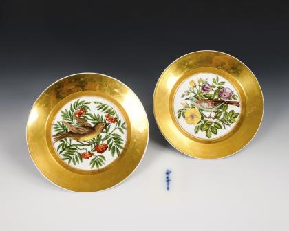 Paar Teller mit Vogelmalerei. KPM Berlin.