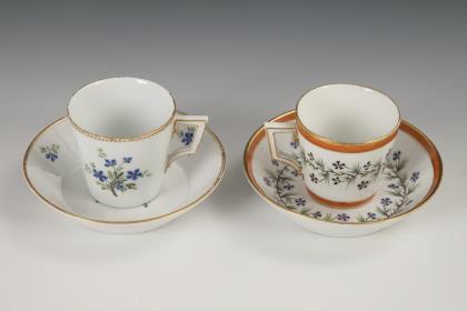 Vitrinentassen mit Kornblumenmalerei. KPM Berlin.