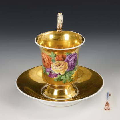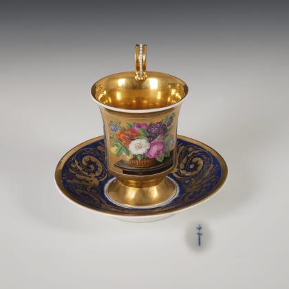 Empire-Vitrinentasse mit Blumenmalerei. KPM Berlin.