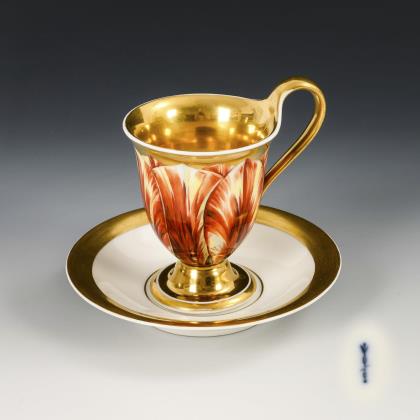 Biedermeier-Tasse mit Tulpenmalerei. KPM Berlin.