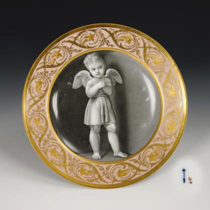 Biedermeier-Bilderteller mit Grisaillemalerei. KPM Berlin.