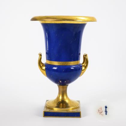 Große Kratervase mit königsblauem Fond. KPM Berlin.