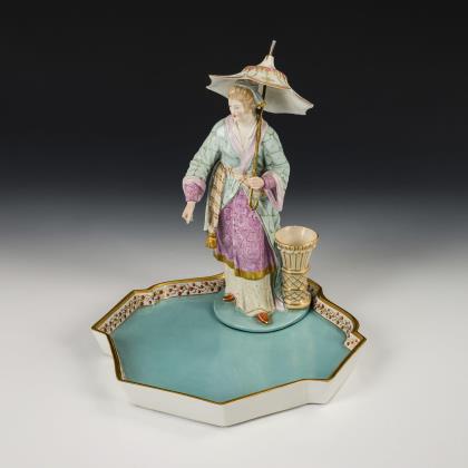 Chinesin mit Schirm auf Tablett. KPM Berlin.