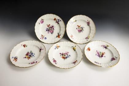 5 Teller mit Blumenmalerei. KPM Berlin.