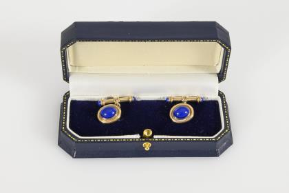 Dekorative Manschettenknöpfe der englischen Marke Deakin & Francis mit Lapis Lazuli-Cabochons