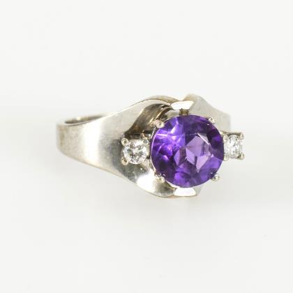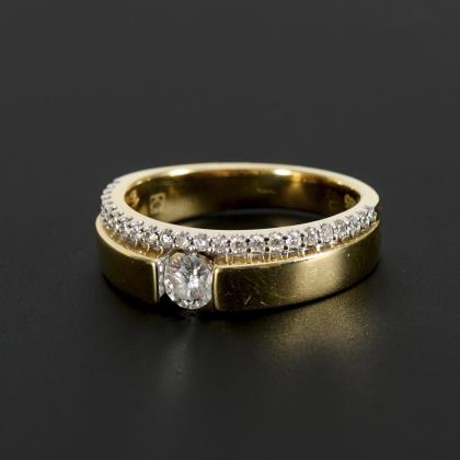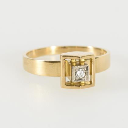 Ring mit Brillantsolitär und kleinem Brillantreif.