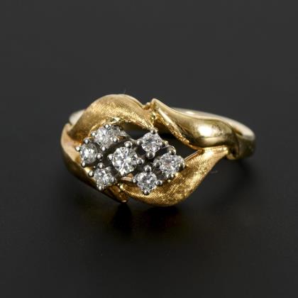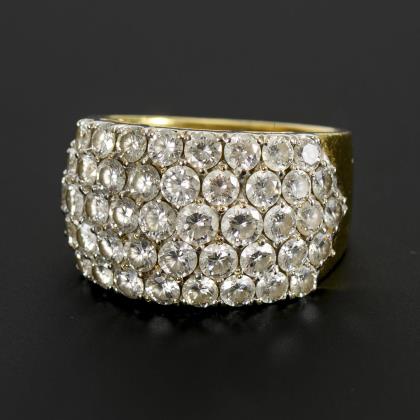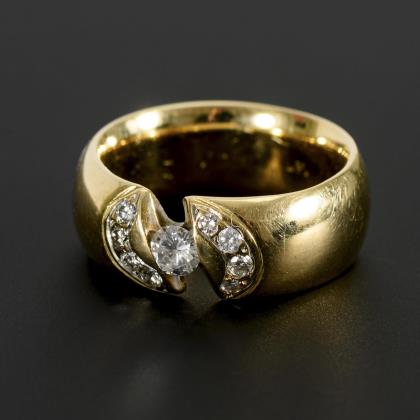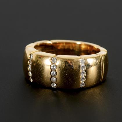 Breiter Bandring, besetzt mit 3 vertikalen, mit je 5 kleinen Brillanten ausgefassten Stegen