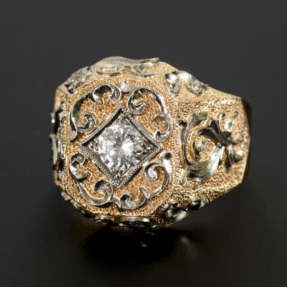 Klassischer Ring mit Brillantsolitär, dieser durch angebrachten Reif mit kleineren Brillanten ergänzt