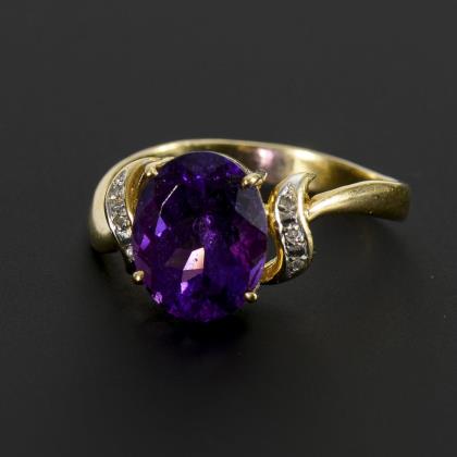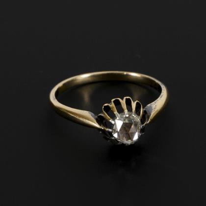 Ring mit ovalförmigen, krappengefassten Solitär-Diamanten im Rosenschliff